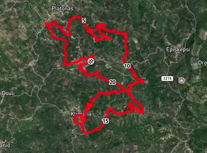Απαιτητικός αγώνας 22χλμ με αφετηρία την πλατεία Νυμφών, περνάει μέσα από τις γειτονιές του χωριού και κατευθύνεται προς την εκκλησία του Άι Γιώργη Πλάτωνα.