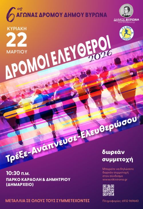 6ος Αγώνας Δρόμου Δήμου Βύρωνα «Δρόμοι Ελεύθεροι» 2026 - Δυναμικό Βάδην 500μ (60+)