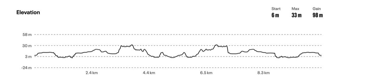 Υψόμετρο: εκκίνηση/τερματισμός 6μ, μέγιστο 33μ, ελάχιστο 0μ.