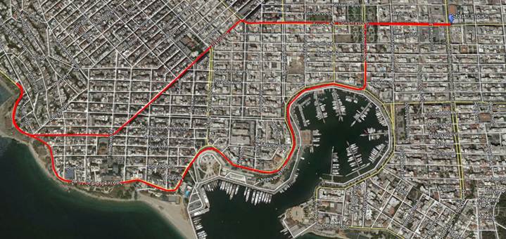 Διαδρομή: Δημοτικό Θέατρο → Λεωφόρος Χατζηκυριάκου → οδούς Σαχτούρη και Μητρώου → Ακτή Θεμιστοκλέους (Μαρίνα Ζέας) → επιστροφή στην οδό Ίβης → Ακτή Μουτσοπούλου → Ηρώων Πολυτεχνείου → τερματισμός στο θέατρο.
