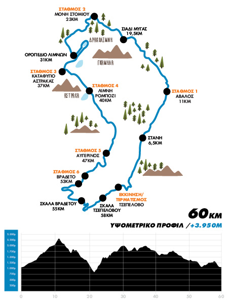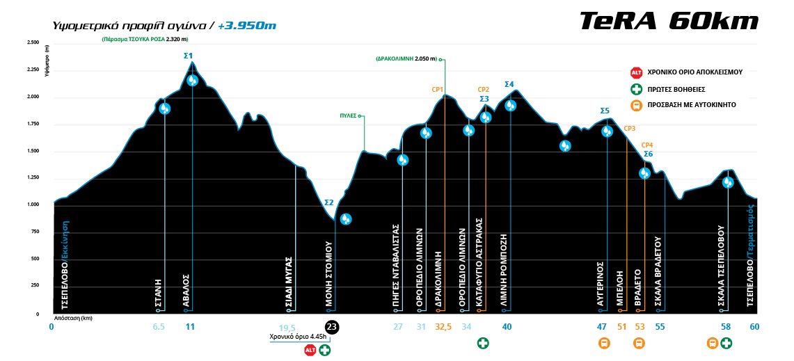 Συνολική υψομετρική διαφορά: +4000m