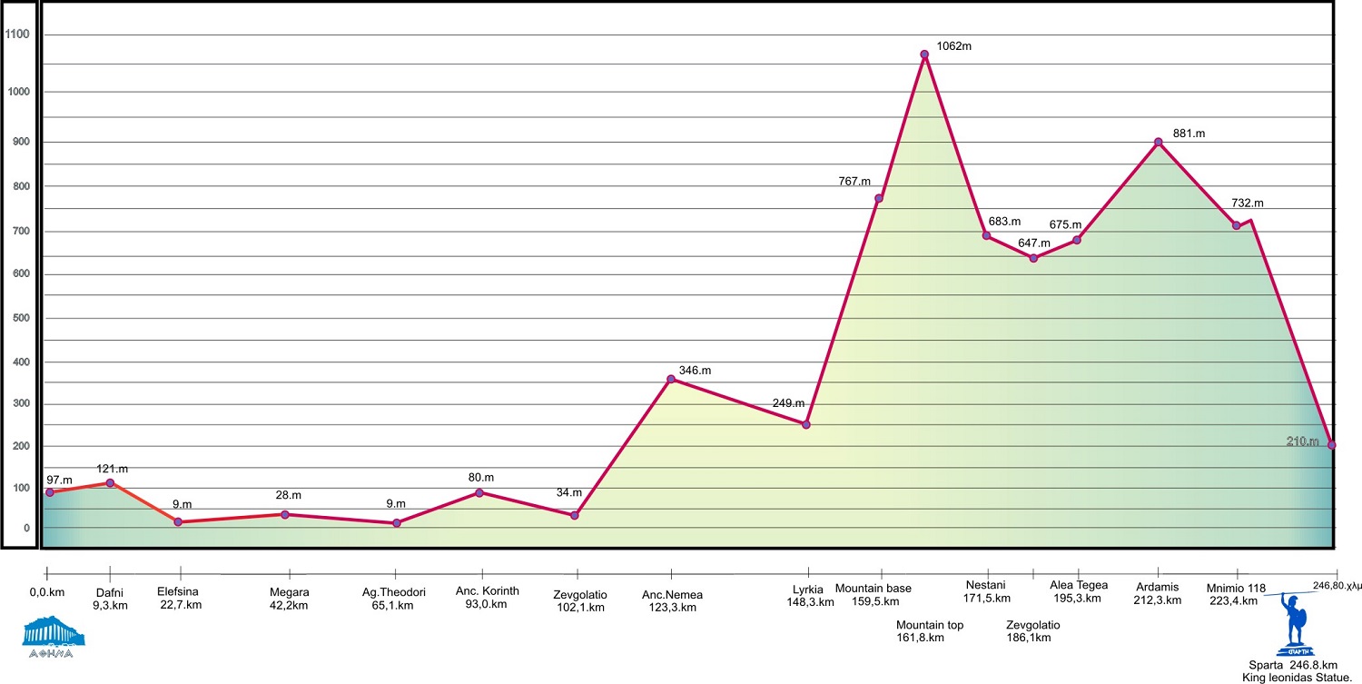 The legendary 245.1km ultra-distance race from Athens to Sparta, following the footsteps of Pheidippides.