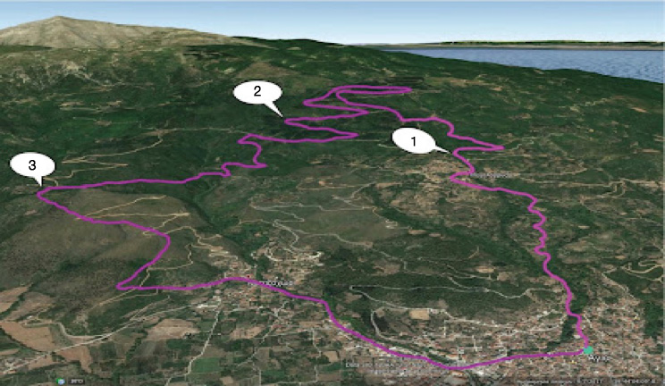Start/finish at Central Square of Agia.