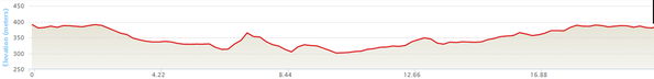 Highest point: 391m (start/finish), lowest: 301m (10km).