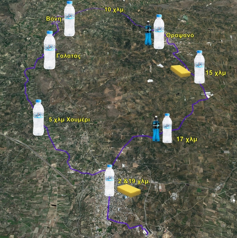 Loop course starting/finishing at Arkalochori Exhibition Center, passing through Choumeri, Galatas, Voni, Thrapssano.